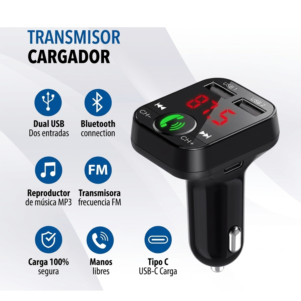✨ Fácil de Usar y Compacto: Simplemente enchufa el adaptador a la toma del encendedor de tu coche 🔌, sincroniza tu Bluetooth, ¡y listo! Su diseño elegante y compacto se integra perfectamente en el interior de cualquier vehículo. 😉