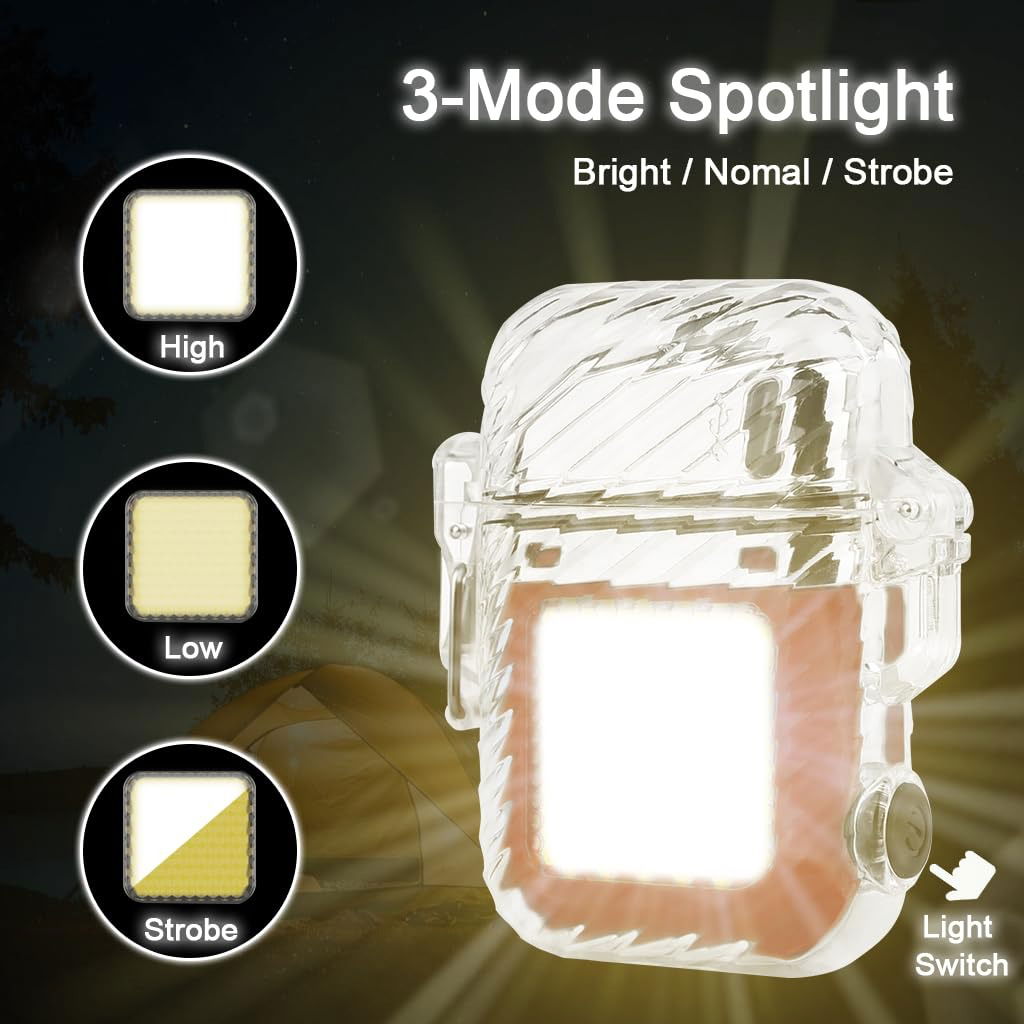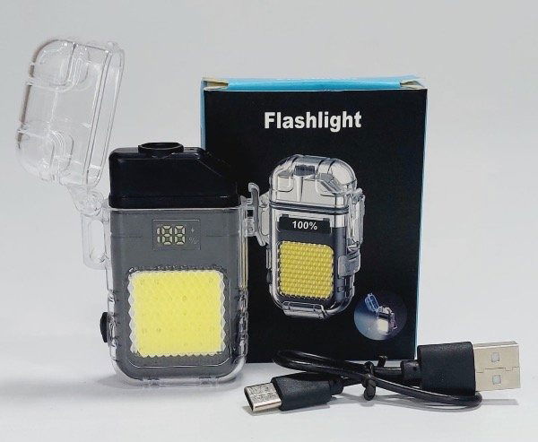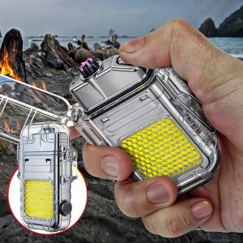 Dispositivo 2 en 1: encendedor sin gas + luz potente para emergencias.