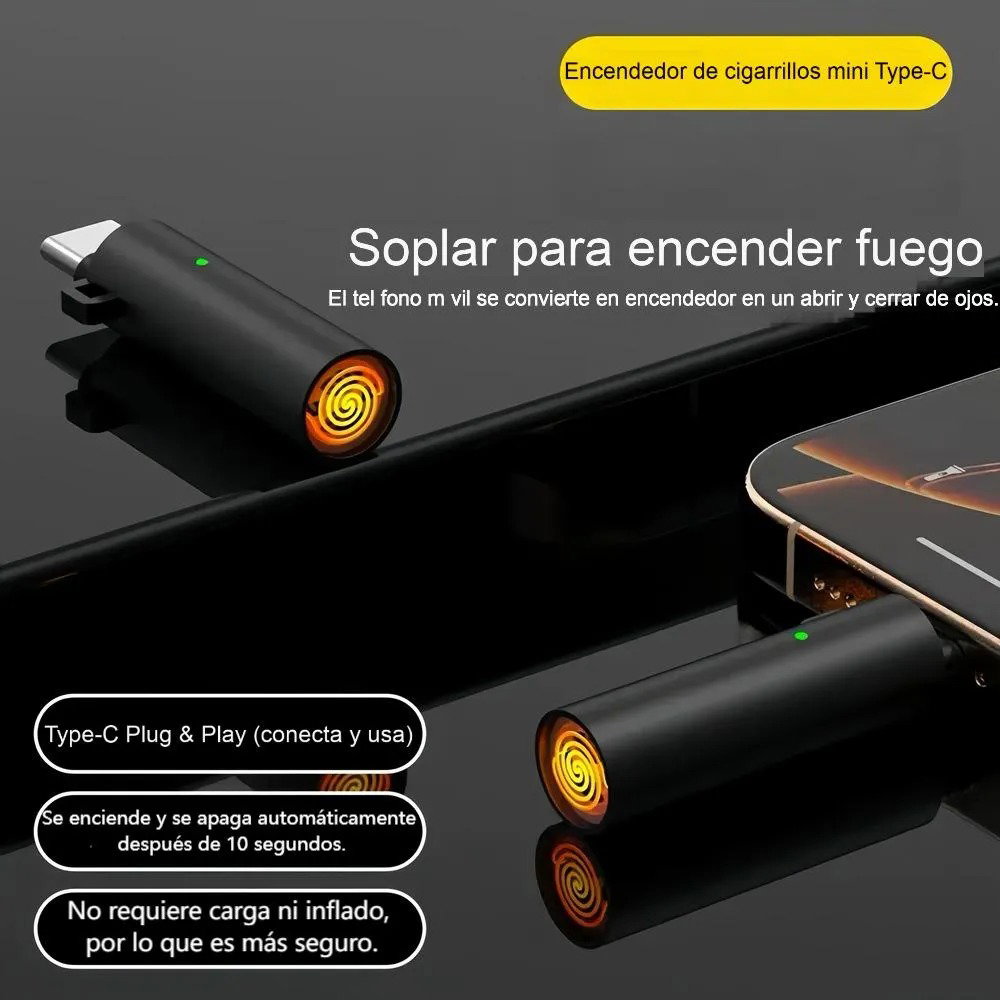 El fin de los encendedores perdidos o vacíos. Este innovador accesorio se conecta directamente al puerto USB-C de tu celular (o cualquier dispositivo compatible) para generar calor instantáneo. Es la solución más compacta, ecológica y segura para tener siempre fuego a mano sin depender de combustibles fósiles.