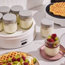 Disfruta de un yogur fresco, saludable y sin conservantes con la Yogurtera Daewoo DYM-650 . Su sistema de fermentación mantiene la temperatura ideal para obtener una textura cremosa y deliciosa en cada preparación.