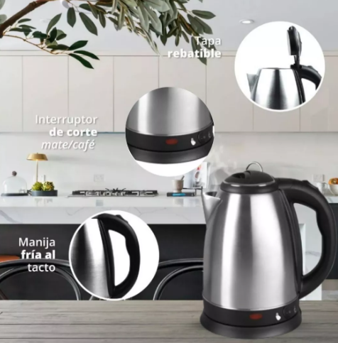 Esta pava eléctrica metálica de 2 litros combina eficiencia y diseño para tu cocina 🏠✨.