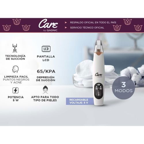 La aspiradora de puntos negros es un dispositivo portátil diseñado para limpiar profundamente los poros, eliminar puntos negros, exceso de grasa y suciedad acumulada. Una solución estética efectiva y no invasiva para el cuidado facial diario.