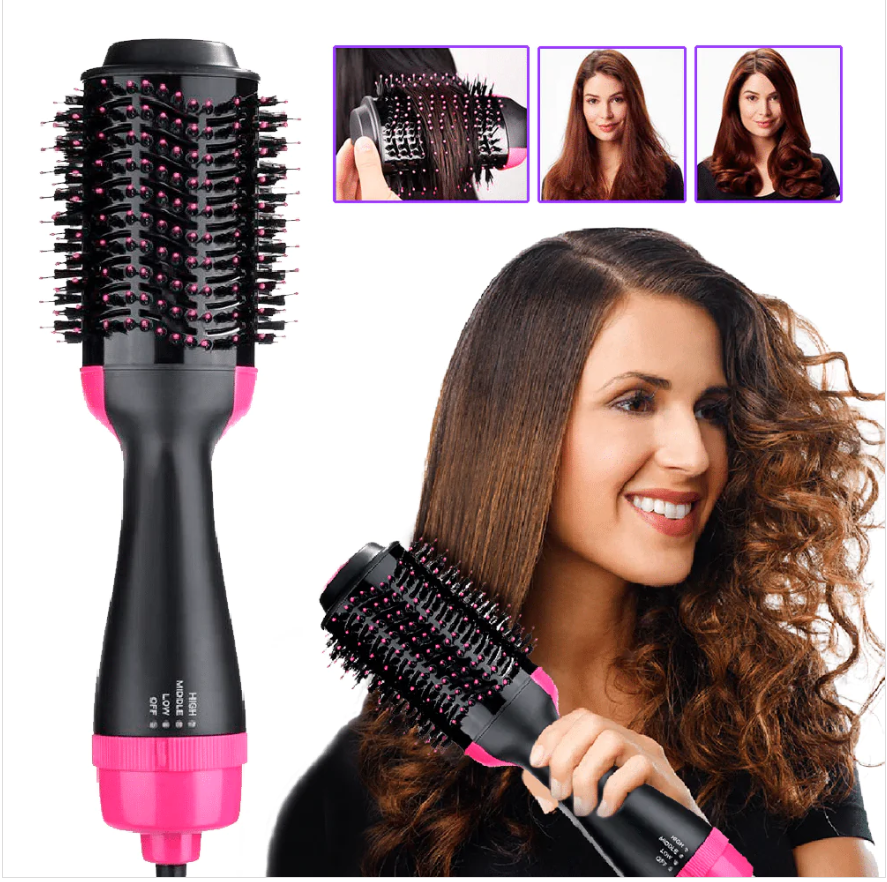 El cepillo 3 en 1 combina secador, alisador y modelador en un solo dispositivo. Ideal para quienes buscan peinarse rápido, con volumen y brillo, sin necesidad de usar múltiples herramientas.