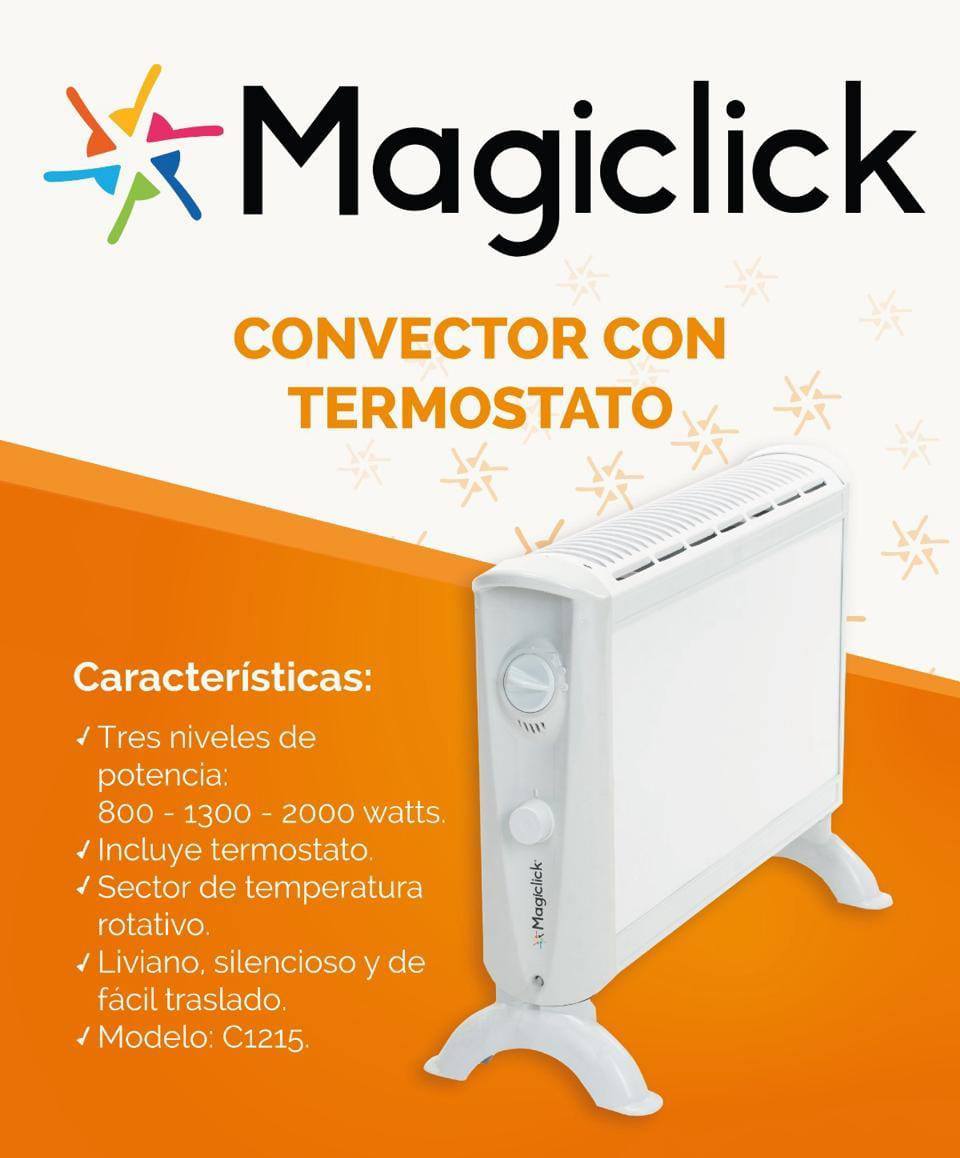 El convector Magiclic es una excelente opción para calefaccionar ambientes de manera uniforme, sin ruido ni consumo excesivo. Su diseño moderno y liviano lo convierte en un aliado perfecto para el hogar o la oficina.