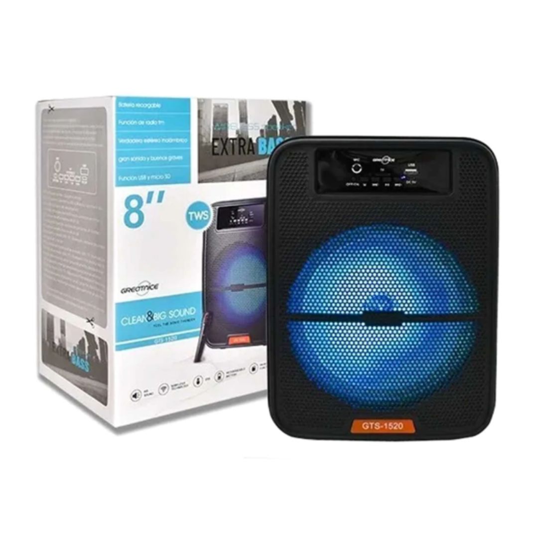 Disfrutá de tu música favorita con un sonido potente y claro gracias al Parlante Greatnice de 8 pulgadas, ideal para tus reuniones, fiestas o uso diario. Su diseño portátil y moderno lo convierte en el compañero perfecto para llevar la música a todos lados.