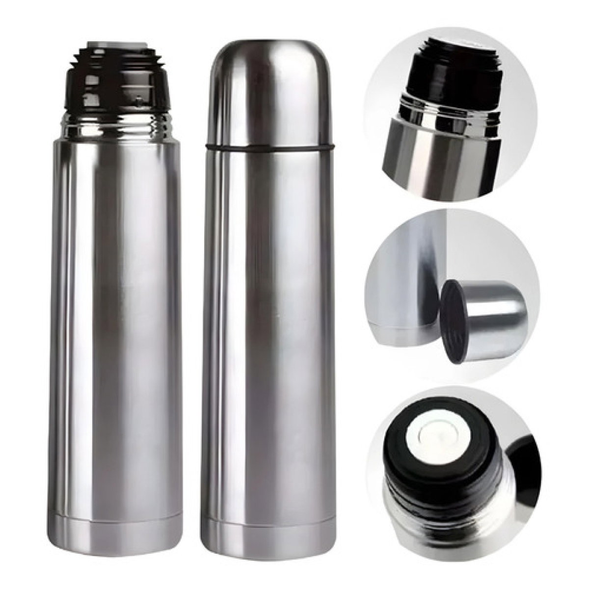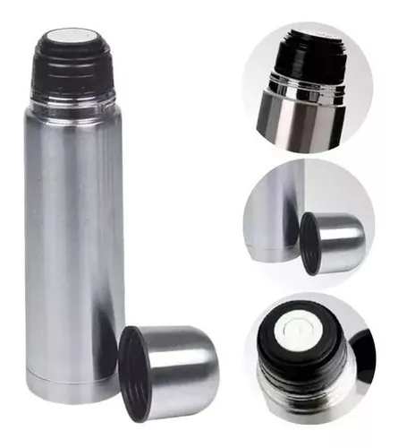 Tapa Doble Función: La tapa exterior sirve como vaso o taza . La tapa interior es de rosca y suele tener un mecanismo de pulsador para servir sin desenroscar completamente.