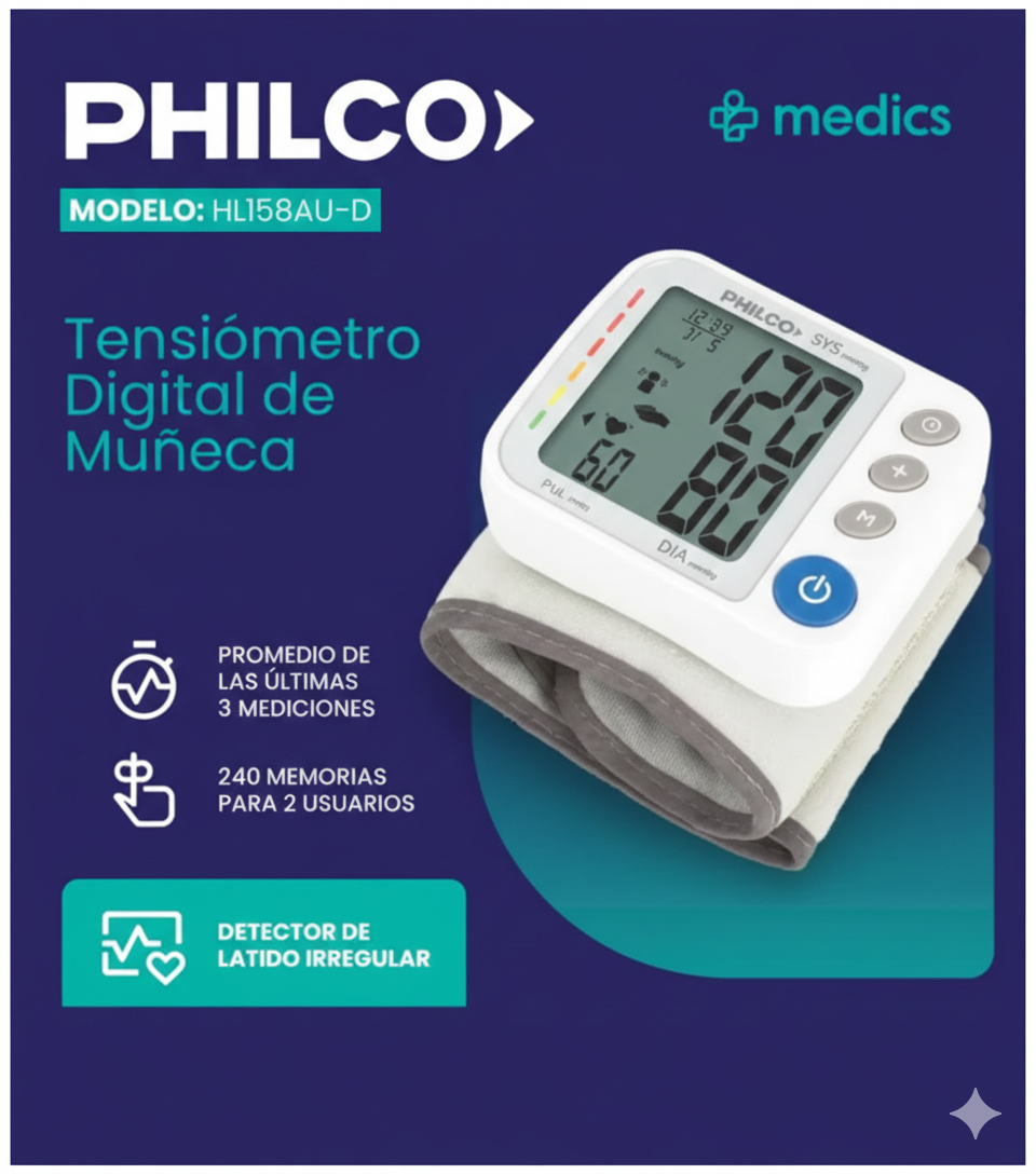 Medición Rápida y Precisa: Mide la presión sistólica (superior), diastólica (inferior) y el pulso (frecuencia cardíaca).