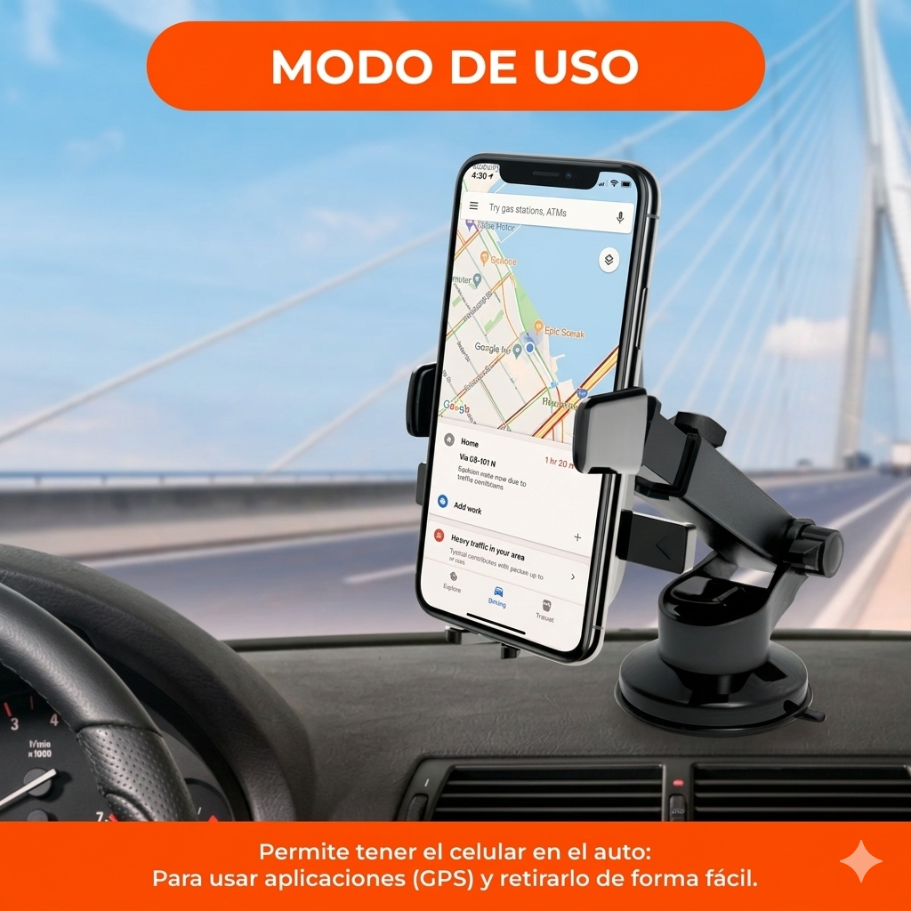• Permite tener el celular en el auto: Para usar aplicaciones (GPS) y retirarlo de forma fácil