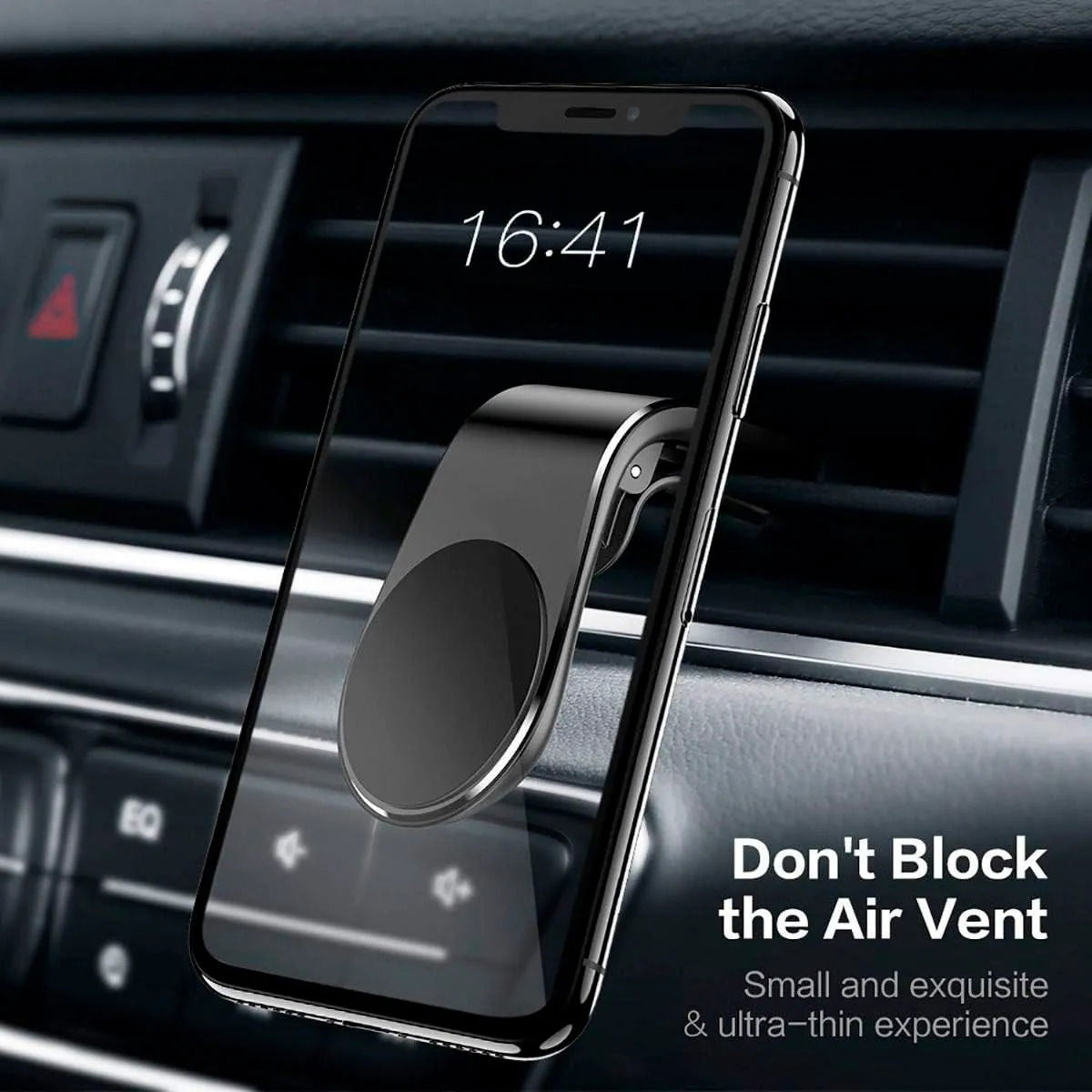 Fijación a la Rejilla: Se instala fácilmente en la rejilla de ventilación del automóvil, manteniéndolo cerca y sin obstruir la vista del camino.