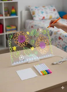 Un tablero divertido para que los chicos dejen volar la imaginación, escriban sus frases, marquen rutinas o jueguen creando diseños luminosos. Ligero, seguro y súper llamativo.