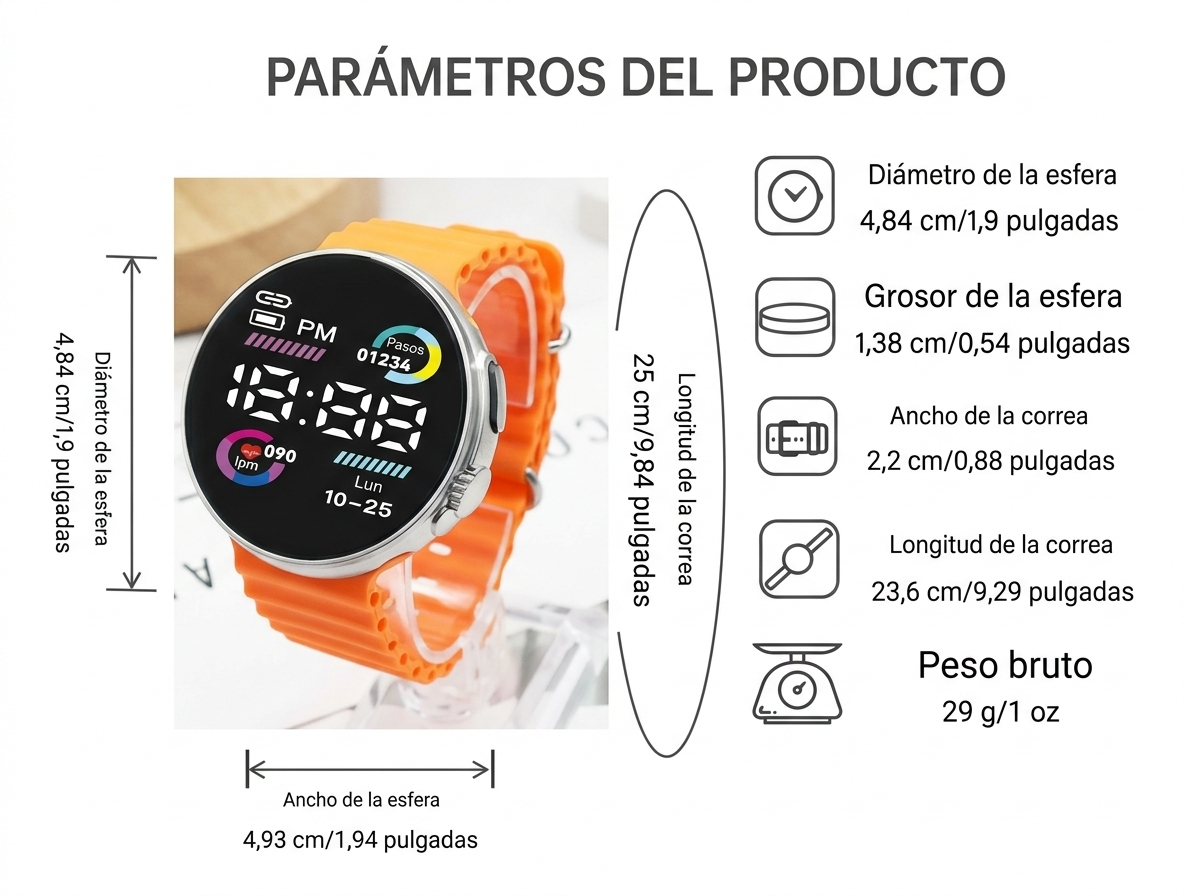 Nota: Se trata de reloj a quartz digital a pila (Reemplazable).